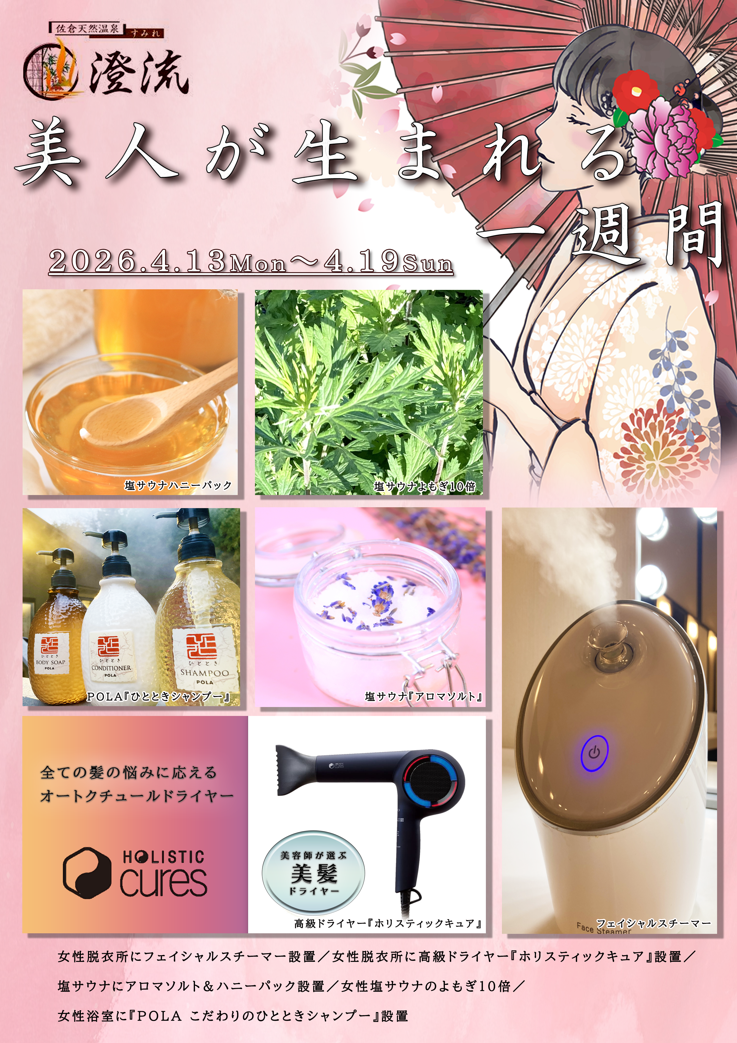 澄流自慢の自家源泉「佐倉染井野温泉」で、ぽかぽかの身体とすべすべの肌をお楽しみください。