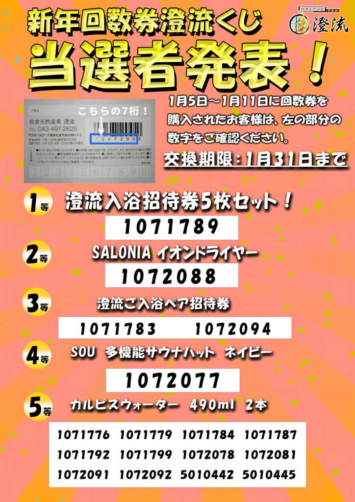 新年運試し!回数券澄流くじ当選発表!
